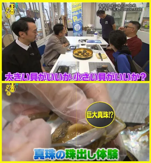 【有吉くんの正直さんぽ】で真珠の珠出し体験が放映されました。